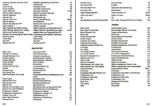 In diesem Technikbuch werden alle gängigen Grundfiguren der Standardtänze Langsamer Walzer, Tango, Slowfox und Quickstep in Tabellenform beschrieben. Zusätzlich gibt es eine Erklärung der technischen Grundprinzipien und Kombinationsmöglichkeiten der Figuren. Die „Ballroom Technique“ wird von vielen Verbänden als Ausbildungsmaterial für Tanzlehrer und Trainer benutzt.