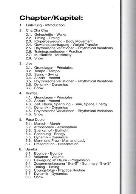 Der Titel ist das Programm. Die Perkussionsinstrumente und die Rhythmen aller fünf lateinamerikanischen Tänze werden auf dieser DVD vorgestellt. Zu allen Rhythmen zeigen die mehrfachen Vize-Weltmeister der Professionals in der Latein-Kür, Martin Dihlmann und Lydia Dihlmann-Weißer, die entsprechenden Bewegungen. Durch das Verständnis und das Bewußtsein für Rhythmus und Bewegung entsteht die Symbiose von Musik und Tanz, die die Tänzer zu einem Teil der Musik werden läßt. Das ideale Lehrmaterial für Tänzer, Trainer und Wertungsrichter. Details siehe Abbildung.