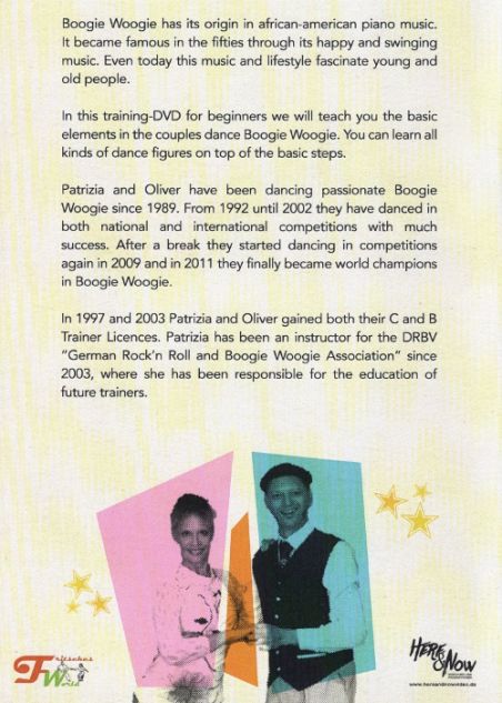 Boogie Woogie - Dance for Beginners includes the basic dance elements for the Boogie-Woogie dance. Starting with the 6-step basic step, Oliver & Patrizia Fritsche show and explain step by step dance figures, change of place options, turns and simple step options. See illustration for details.